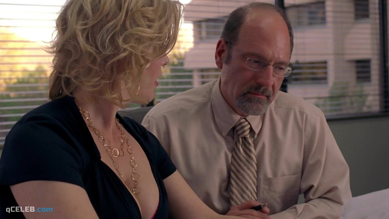 Anna Gunn appears sexy in the drama-crime show “Breaking Bad” season 4 episode 9, released in 2011. On the screen she demonstrated cleavage.