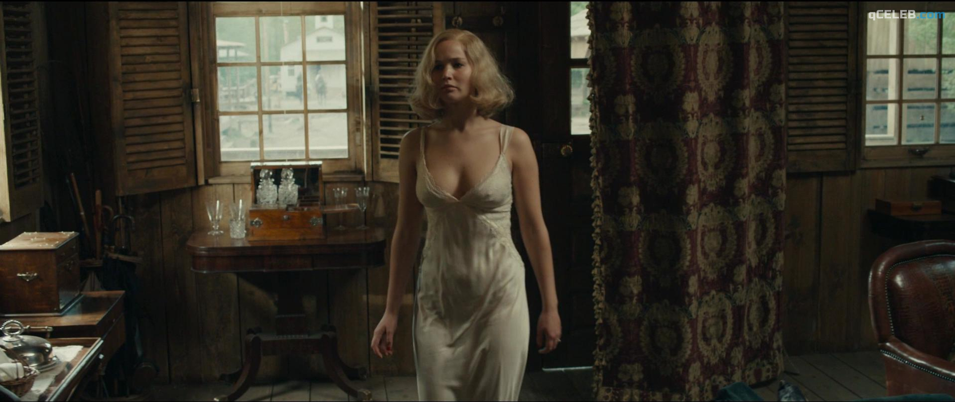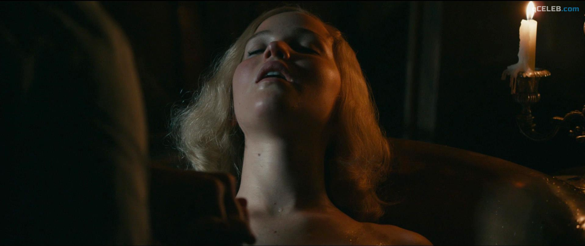 Jennifer Lawrence appears sexy in the drama film “Serena”, released in 2014. On the screen she demonstrated see-through clothing, cleavage and sex.