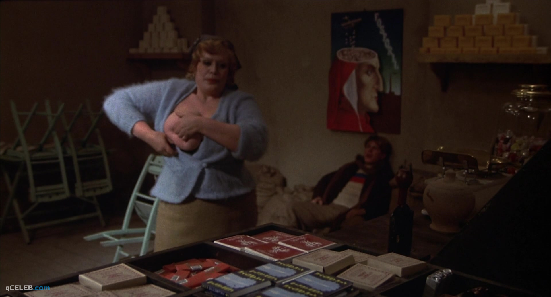 Maria Antonietta Beluzzi appears nude in the comedy-drama film “Amarcord”, released in 1973. In this video you can see her naked boobs.